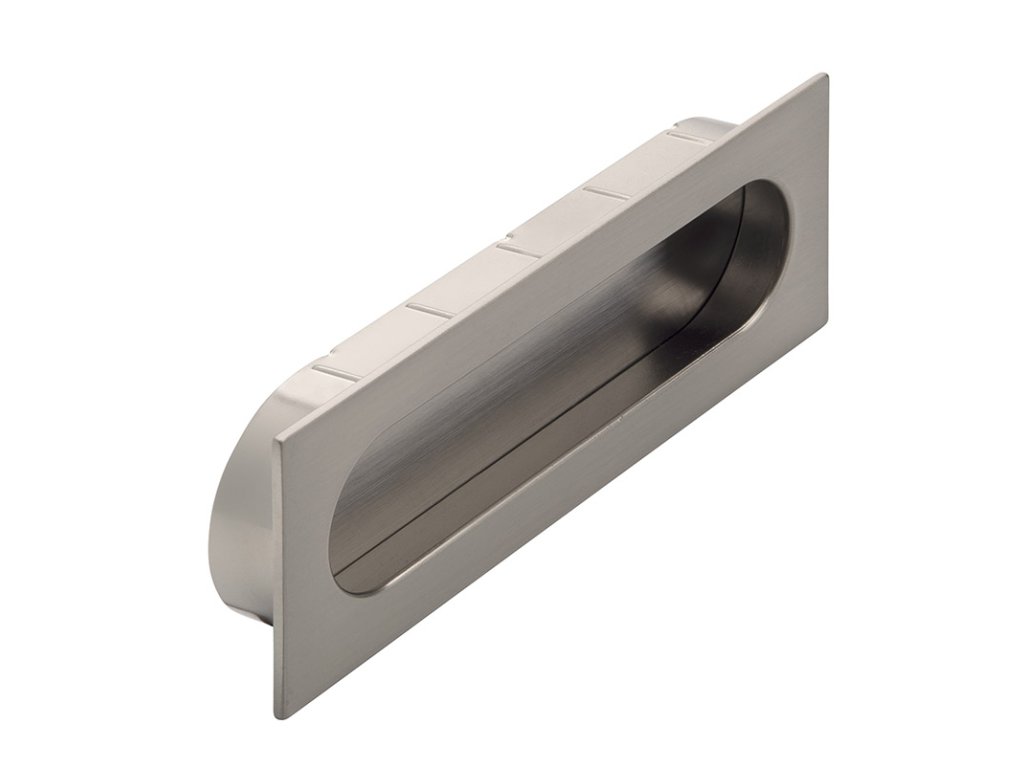 Kovová mušle CHLOE s oboustranným úchytem Délka: 125 mm, Šířka: 45 mm, Hloubka: 14 mm, Povrch: nikl jemne broušený Zadlabávací úchytky jsou vhodné jak na dvířka, tak na posuvné dveře. Kovové mušle se vyrábějí v různých povrchových úpravách a lze je proto dokonale sladit s ostatními kovovými prvky ve vašem interiéru.