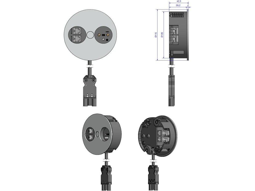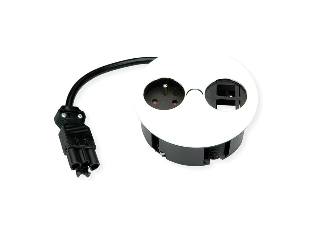 Zápustná elektro zásuvka Bachmann Twist bílá lesklá je otočný zásuvkový modul pro kancelář, kuchyň nebo obývací pokoj. Díky svému kompaktnímu designu a nízké montážní hloubce, je prostorově úsporný při instalaci do pracovní desky stolu nebo kuchyňské desky. Přívodní kabel je vyveden tak, aby hloubka instalace byla pouze 40 mm, tím je umožněna instalace nad zásuvkami kuchyňské linky. Vrchní část je z nerezové oceli. Po stlačení středu otočneho dílu dojde k uvolnění otočné kruhu k odkrytí jedné zásuvky 230V, jednoho modulu USB a jednoho modulu HDMI.